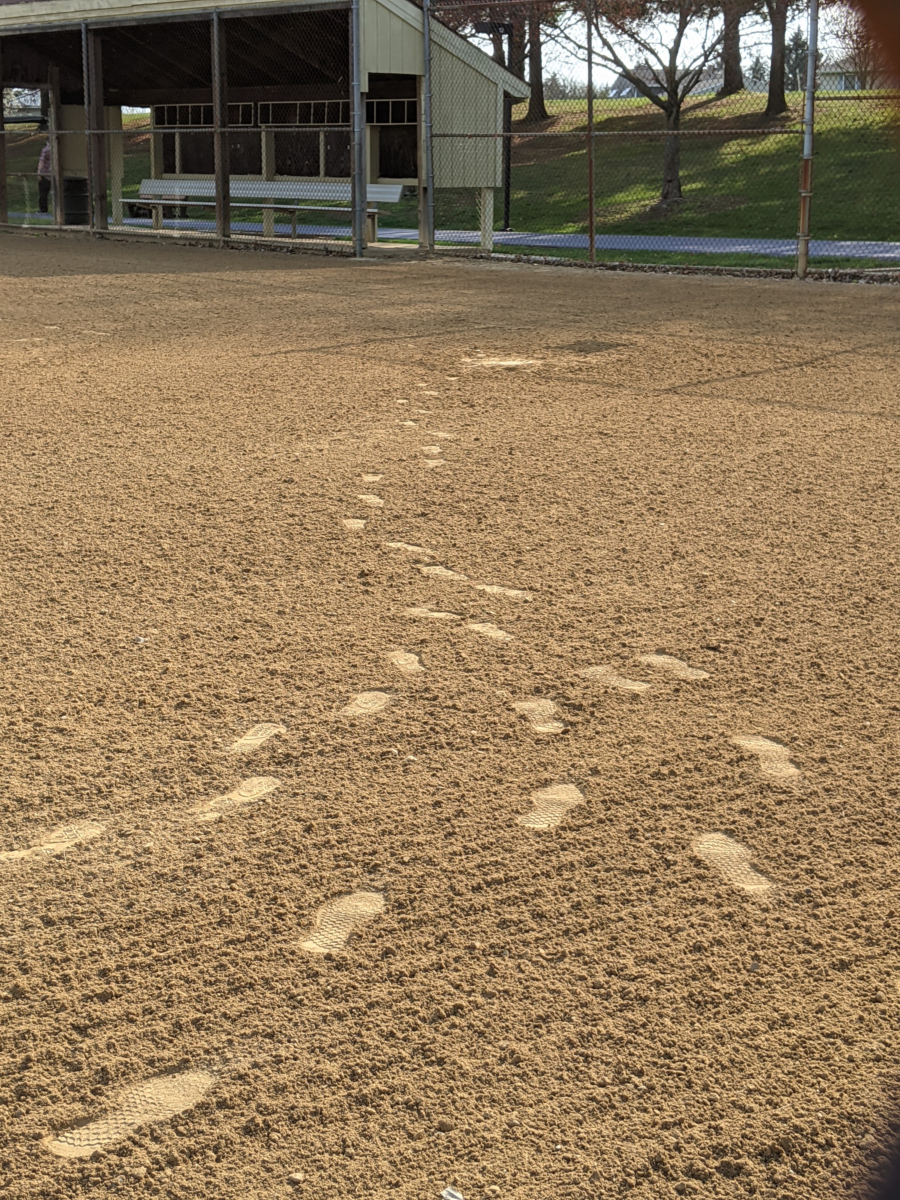 This ball field had very recently been raked. It looked so smooth and undisturbed aside from several lines of foot prints. The thing that struck me about the footprints was that they all seemed to be leading to home plate, with none leading away. This lead me to pondering parallel universes and how one might travel from one to another…If we make it to home plate, is there a portal to another place and time? It gave my fantastical imagination a whole new idea of what the often shouted “SAFE!” might mean.